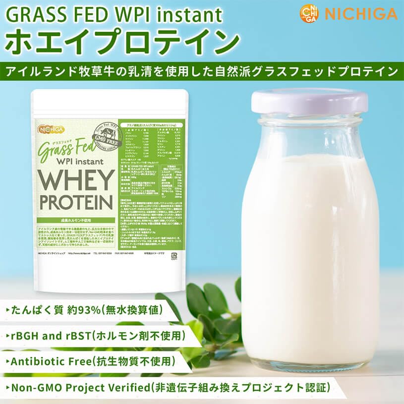 NICHIGA(ニチガ) GRASS FED WPI instant ホエイプロテイン 1kg〔rBGH and rBST牛成長ホルモン不使用〕GMO-Free グラスフェッド TK0