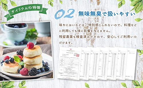 サイリウム(別名:プランタゴ・オバタ/オオバコ)種子の皮を砕いた物で、食物繊維を多く含んでいます。保水性・膨張性にすぐれており、水分を含むと膨れてゼラチン状になる性質で満腹サポート食品としてダイエット補助食品です。 | 〈商品名〉サイリウム(オオバコ)国内製造 糖質0 | 〈原材料名〉サイリウム種皮(国内製造) 〈原産国〉日本(国内製造) | 【栄養成分(製品100gあたり)】エネルギー7.7kcal たんぱく質0.8g 脂質0.5g 炭水化物89.7g糖質0.0g食物繊維89.7g 食塩相当量0.1g カルシウム120mg マグネシウム9.1mg リン11mg 鉄3.9mg カリウム794mg | お召し上がり方 1日2〜3回を目安にお召し上がりください。 ○食品として、水またはお好みの飲み物に混ぜてお召し上がりください。 だまになりやすいので、すばやくかき混ぜて下さい。 出来上がりが固めになった場合は、水分を増やしたり、そのままスプーンでお召し上がりください。お召し上がり後は、多めの水分を補給してください。(お腹がはったり、便秘気味になる場合があります。)