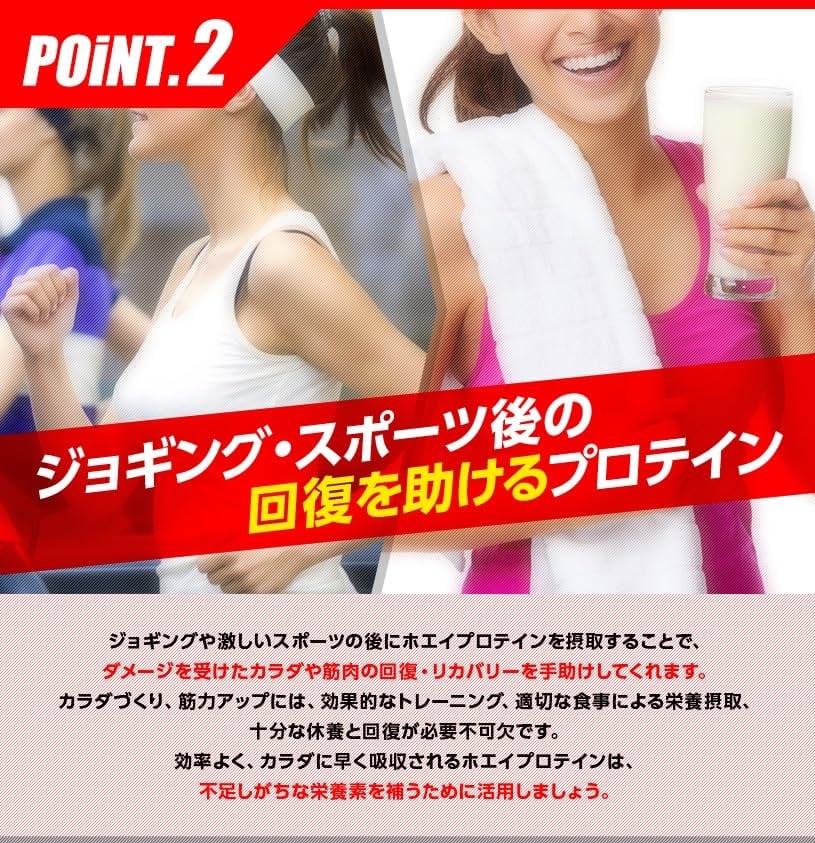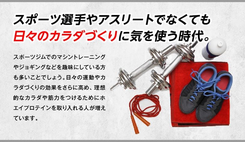 吸収の良い「ホエイプロテイン」を100%使用した乳化剤不使用シンプルなプロテインです。 アミノ酸スコアが高く、BCAA含量も高く、栄養価に優れています。 残留農薬検査実施済み・合成甘味料不使用・合成香料不使用・乳化剤不使用・牛成長ホルモン不使用 【こちらの商品は、溶けやすい加工を行っておりません】 こちらの商品は、乳化剤配合などの溶けやすい加工を行っておりません。粉末形状の比較的溶けやすい造粒品(内容が同じで溶けやすい乳化剤入り)の「ホエイプロテイン 100【instant】」もございます。溶けやすい商品をご希望の方は、そちらをご利用ください。 | ★★★パッケージリニューアル致しました。★★★ | 商品名:ホエイプロテイン100 名称:乳たんぱく加工品 原材料名:ホエイたんぱく(アメリカ製造)(一部に乳成分を含む) | 残留農薬:生乳の定期的なランダムサンプリングプログラムにより、農薬や動物用医薬品の乳への農薬の検査を実施しております。 日本の食品衛生法に適合して安全な製品になっております。 | rBST (成長ホルモン剤)を使用していない牛から搾乳したもののみを使用 | 栄養成分表示(製品100gあたり)エネルギー395kcal たんぱく質(乾物換算)77.5g(81.0g)脂質5.5g 炭水化物8.9g 食塩相当量1.0g カリウム350mg カルシウム280mg マグネシウム60mg 鉄1.2mg リ ン380mg
